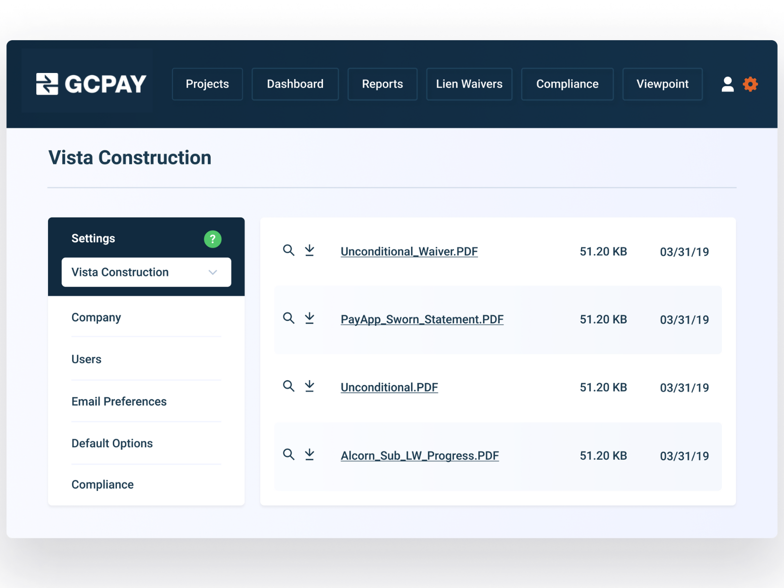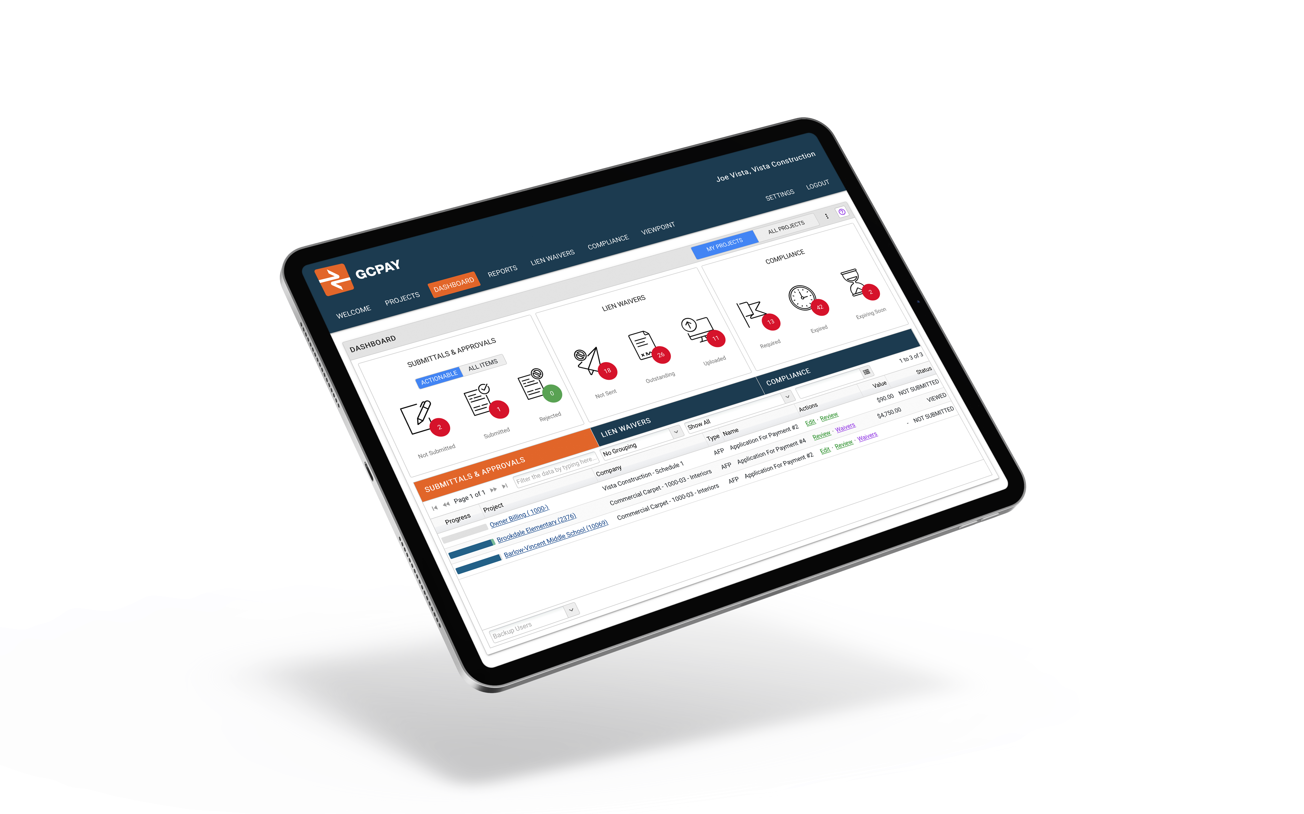 GCPay is a powerfully simple software that fully automates the payment application process between general contractors and subcontractors. Manage payment applications better, pay subs faster, and reduce risk by automating compliance with GCPay.